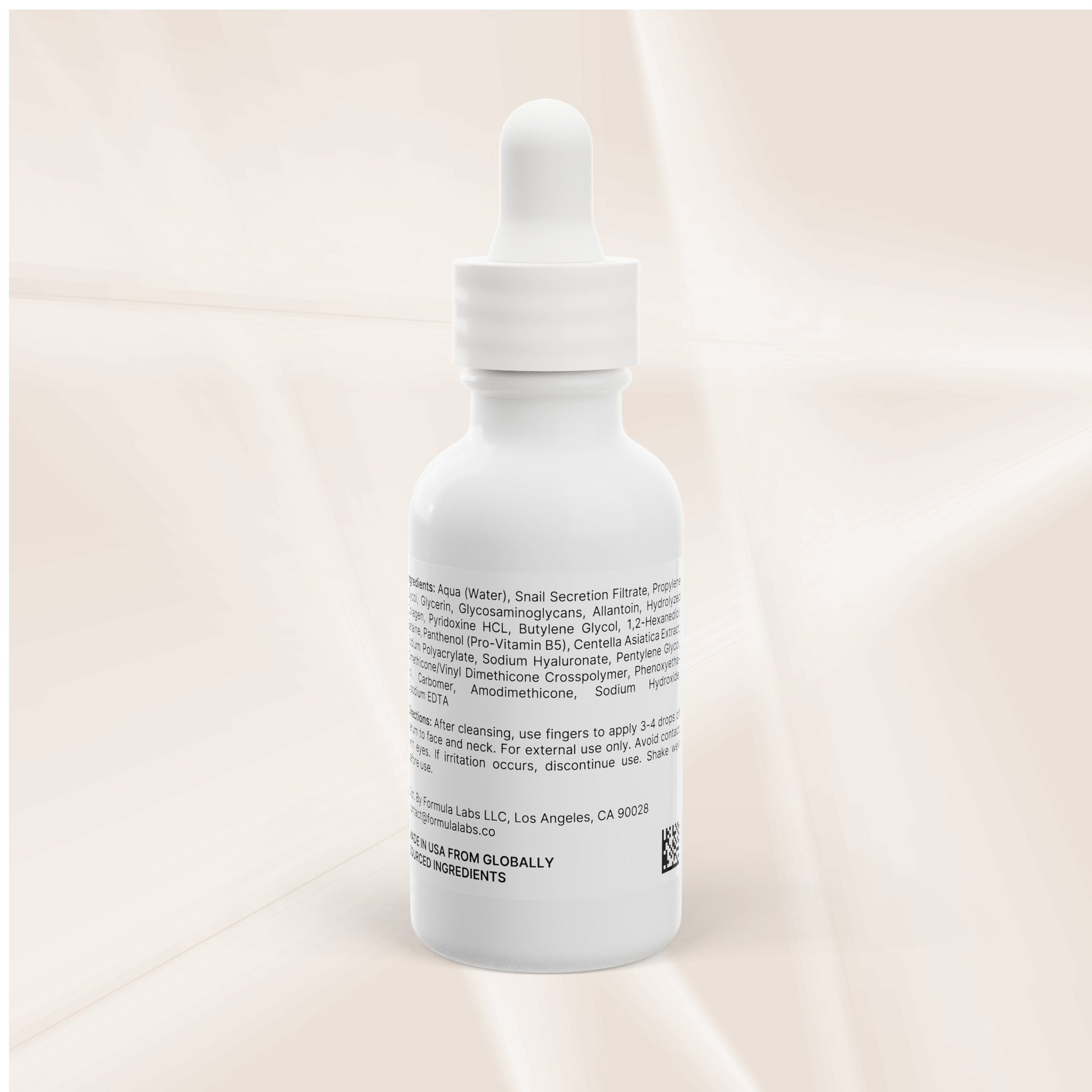 Ingredients: Aqua (Water), Snail Secretion Filtrate, Propylene Glycol, Glycerin, Glycosaminoglycans, Allantoin, Hydrolyzed Collagen, Pyridoxine HCL, Butylene Glycol, 1,2-Hexanediol, Betaine, Panthenol (Pro-Vitamin B5), Centella Asiatica Extract, Sodium Polyacrylate, Sodium Hyaluronate, Pentylene Glycol, Dimethicone/Vinyl Dimethicone Crosspolymer, Phenoxyethanol, Carbomer, Amodimethicone, Sodium Hydroxide, Disodium EDTA.
